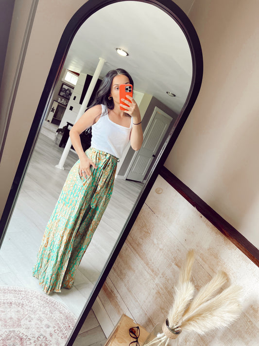 Boho Wide Leg Jumpsuit - Ivory & Mint